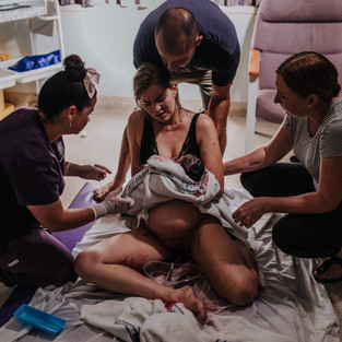My sister-in-law said to me that she thinks I should move back to the mat, she could tell with my breathing that something was happening, so I moved over and leaned on the basin I had two surges here & I could feel my body naturally pushing. Kelly advised that I really needed to move back to the mat, I reluctantly moved to the mat. As soon as I got to there, leaning over the fitball my next surge came I had a big urge to push, this is when my membranes ruptured, was the best feeling of relief. My surges were only 2 min apart & then the next one came & my baby girl was making her way earthside - her head was crowning & I was feeling so strong, John was right by my side, Kelly said Ashleigh quickly feel her head, but my body was shaking & I wanted to save my energy for my next surge, and here it was...two more surges & my beautiful baby girl was out, I leaned back & Kelly passed her through my legs, the most amazing feeling holding our baby girl safe in my arms!